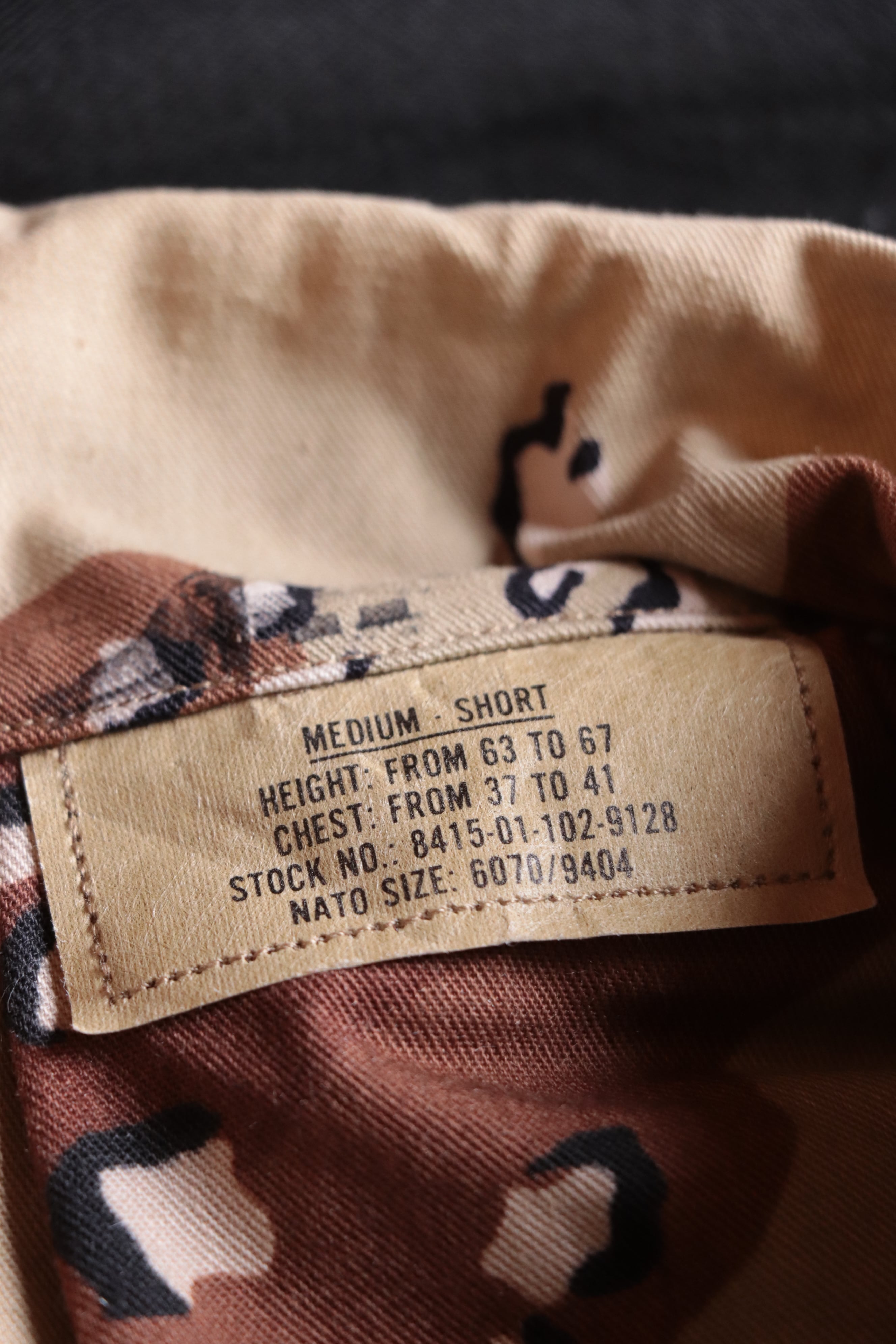 色の構成が中東の砂漠の色と異なっていたために、その後に3COLOR DESERTに変更となり、短命に終わった、希少なカモフラージュ柄です。