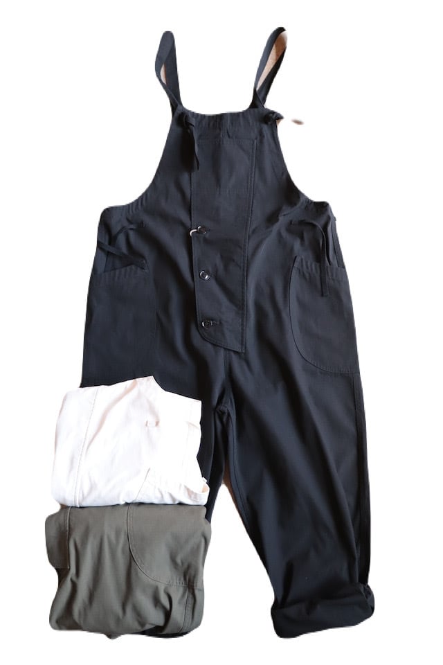 USサルベージパンツやデッキパンツのディテールを融合させたオーバーオールです。