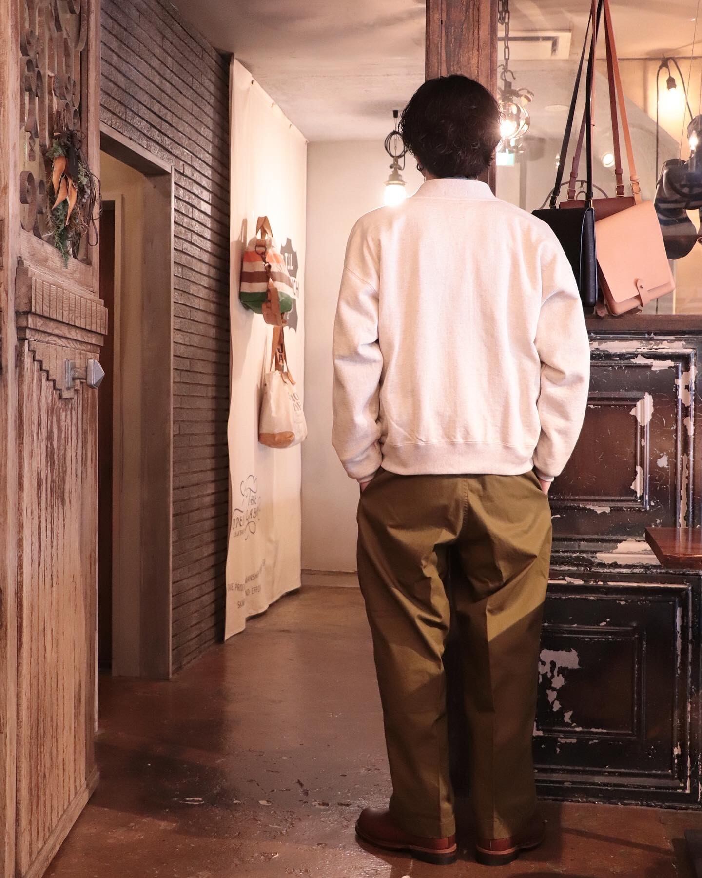 1950年代のウールレタードニットカーデを参考に、こだわりの吊り裏毛生地で作成されました。