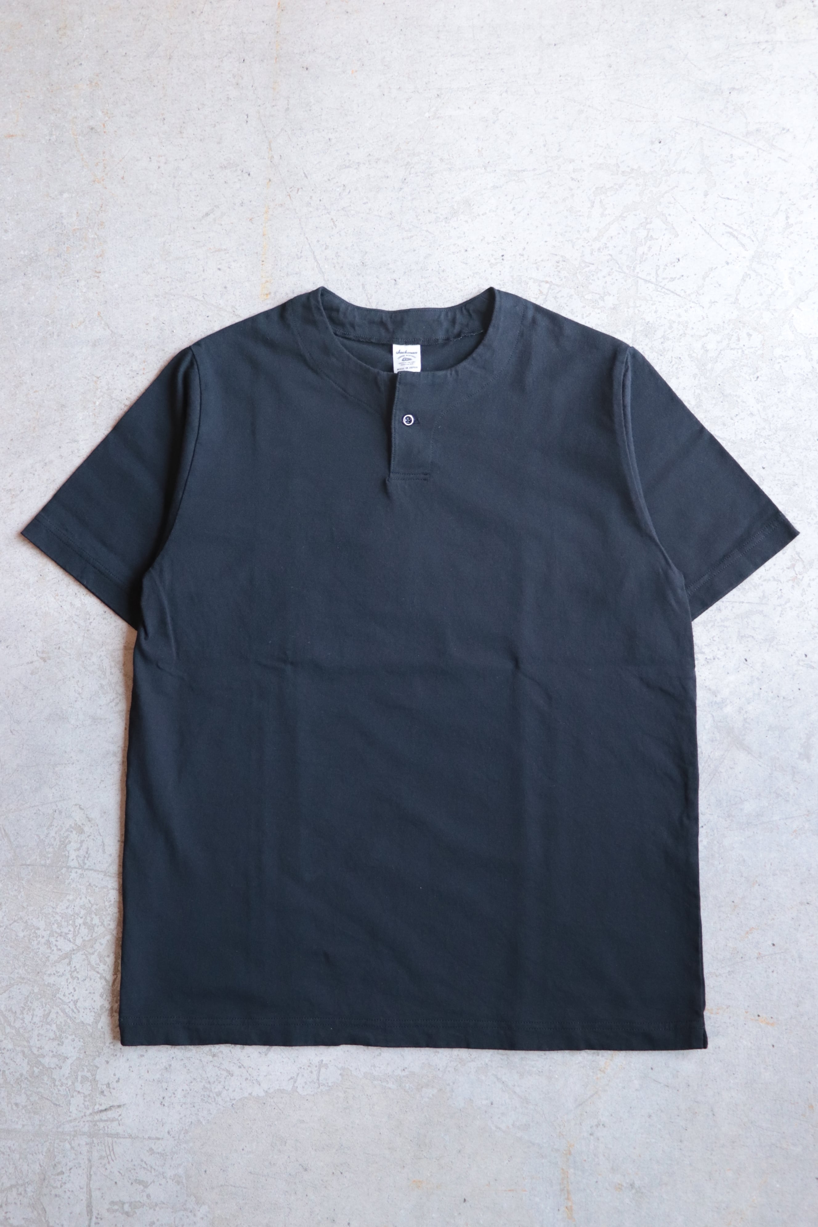 アメリカミシシッピ川流域の綿作地帯を主産地とした長さ13-33mm程度の綿毛を空気紡績したコットンを使用したヘンリーネックT-Shirt。