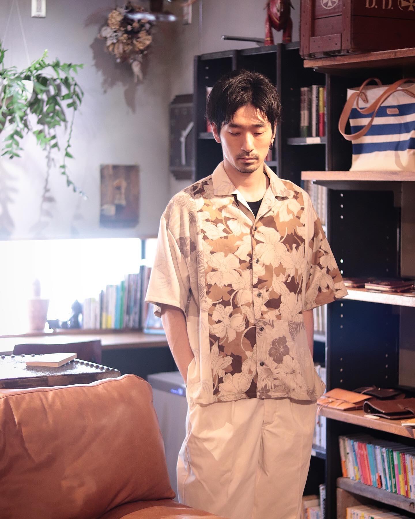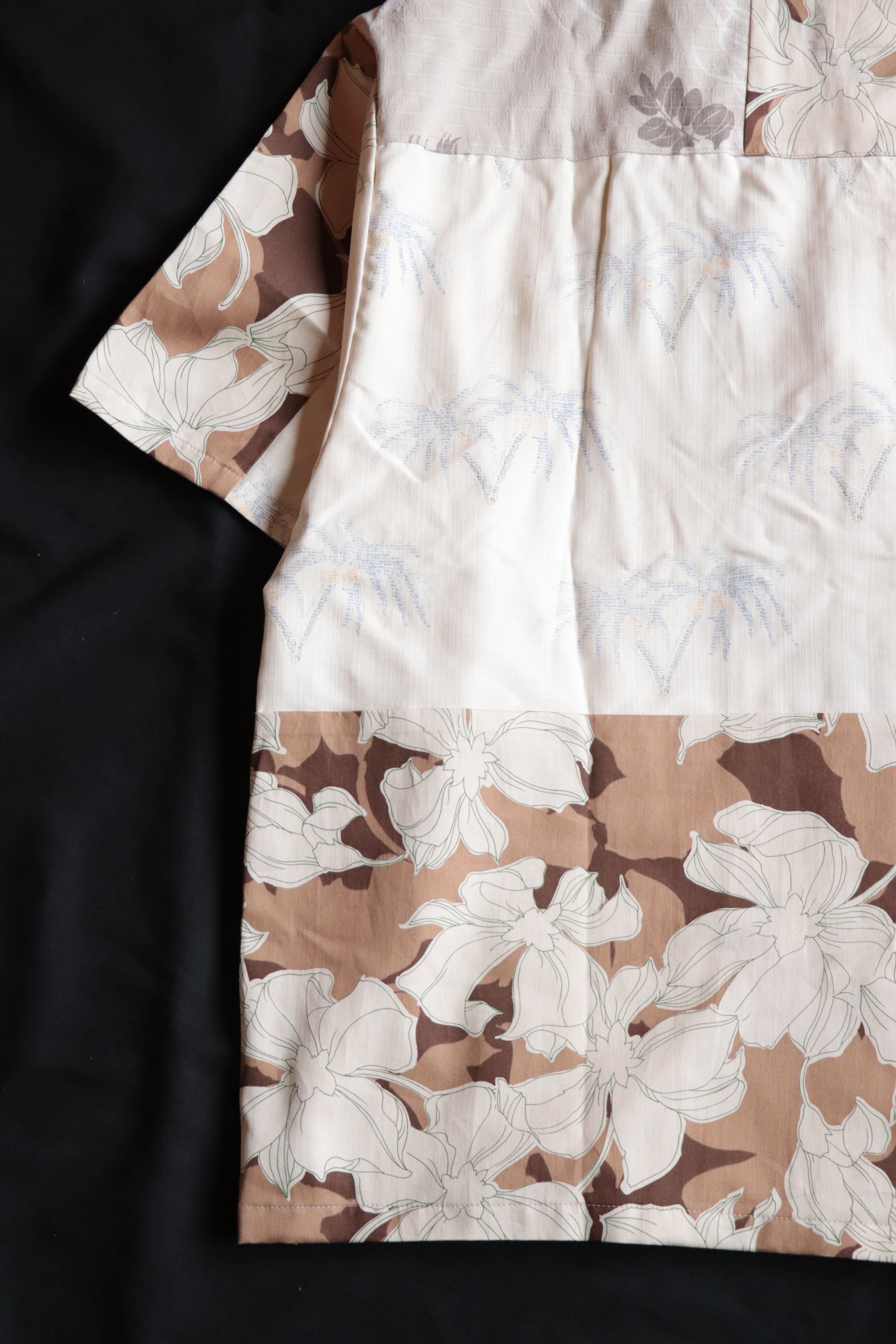 年代や素材感の異なる古着のアロハシャツを解体し、再構築した1着で、唯一無二の存在感を放ちます。