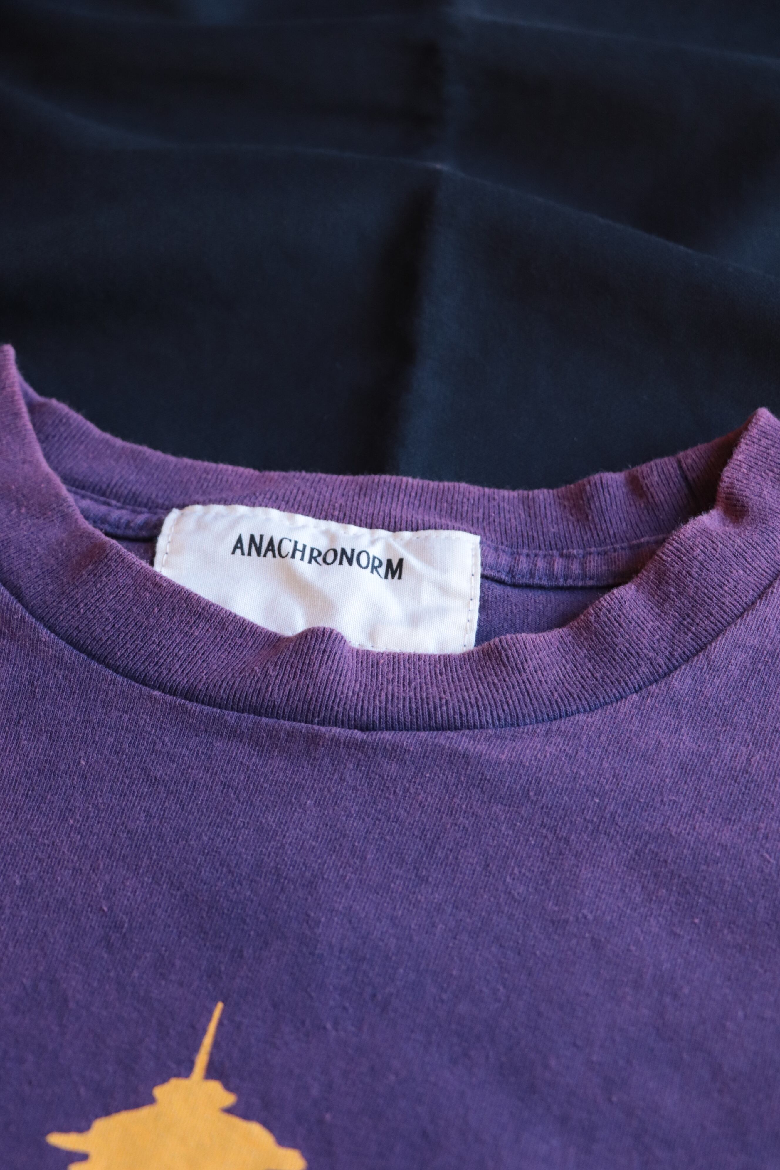 ANACHRONORMのミニ刺繍が左胸に入った定番Tシャツをベースに、フロントにカレッジプリントを施してます。
