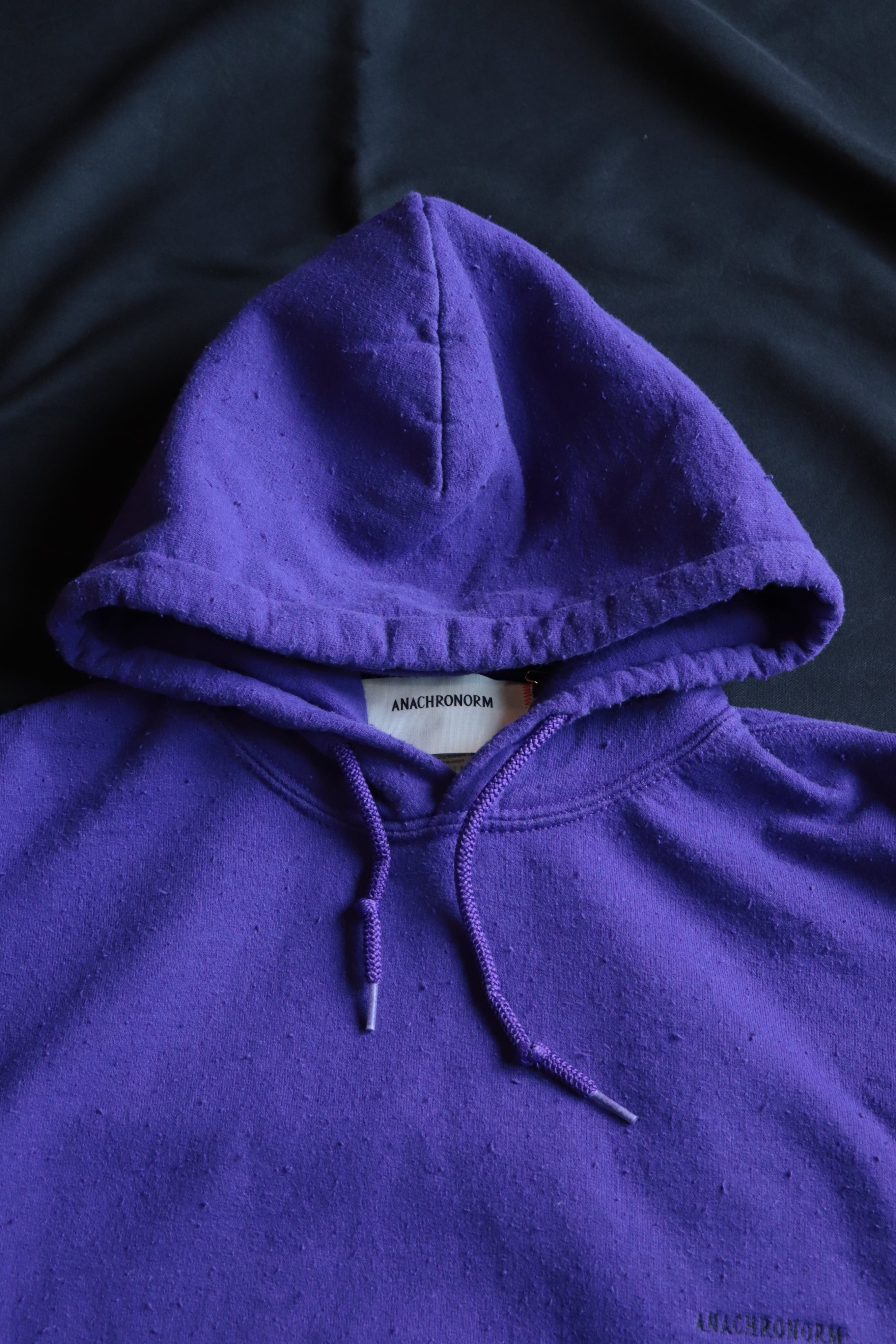 ナッピング加工(毛玉加工)を施し、あえてチープな雰囲気に制作されたパーカーです。