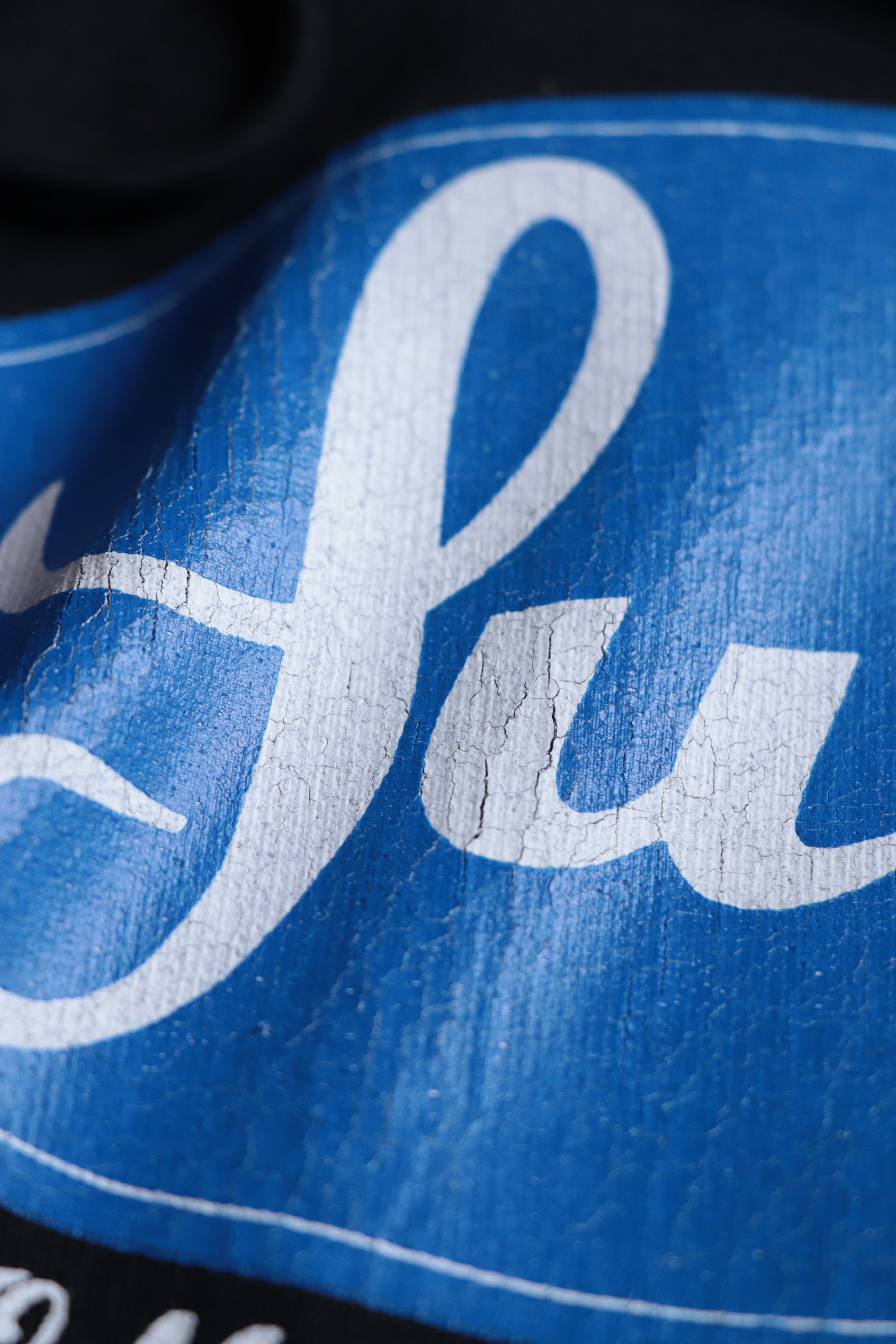 100年以上の歴史を持つアメリカの車メーカーを連想とさせるコチラは、ミクスチャーロックの先駆け的存在カリスマバンドのボーカルが着用していたTシャツを着想を得た、遊び心のあるデザインとなっています。
