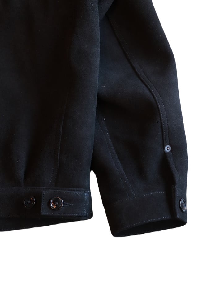 こちらは1.6mm厚のディアスキンスウェード(鹿革)を使用したジャケットです。