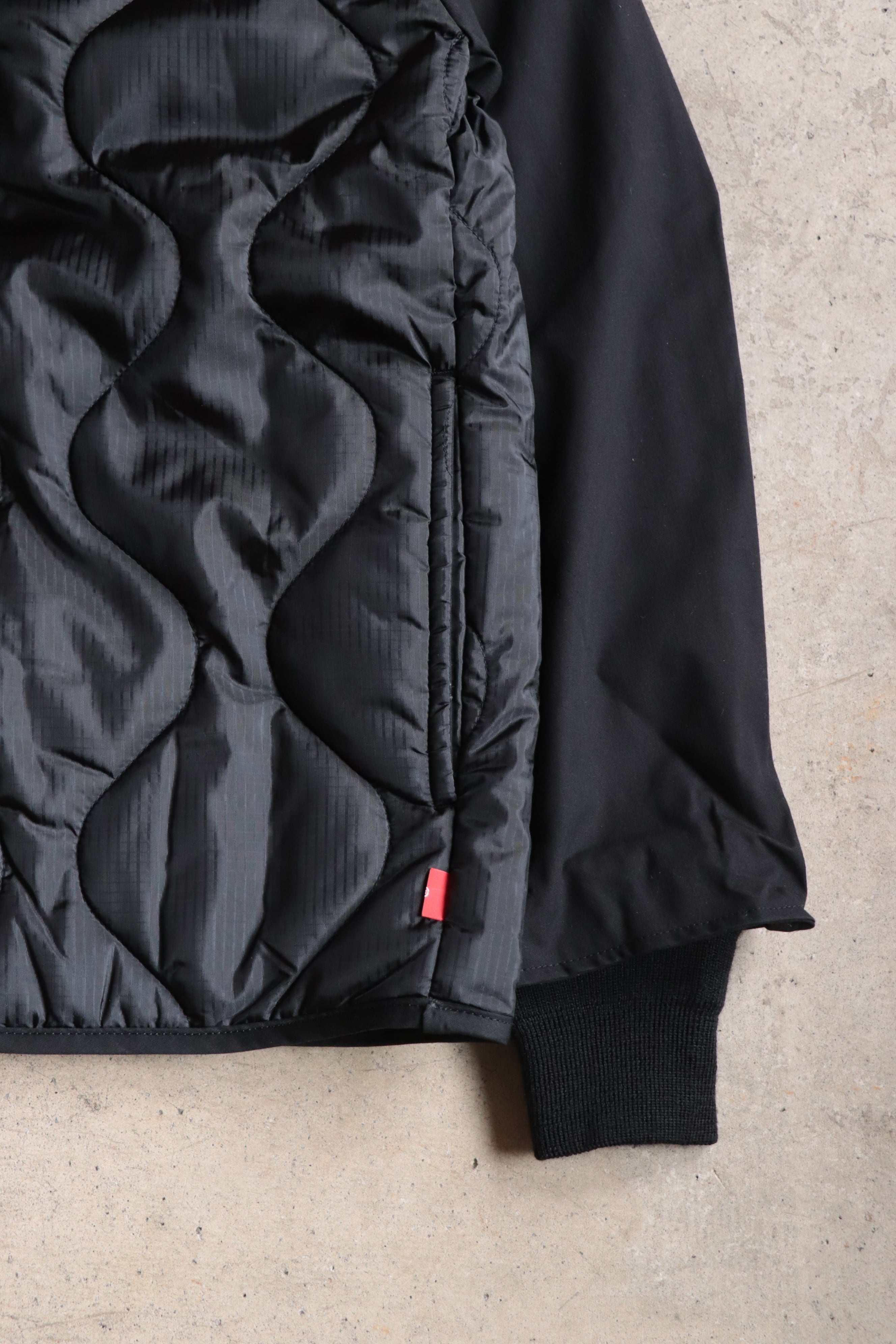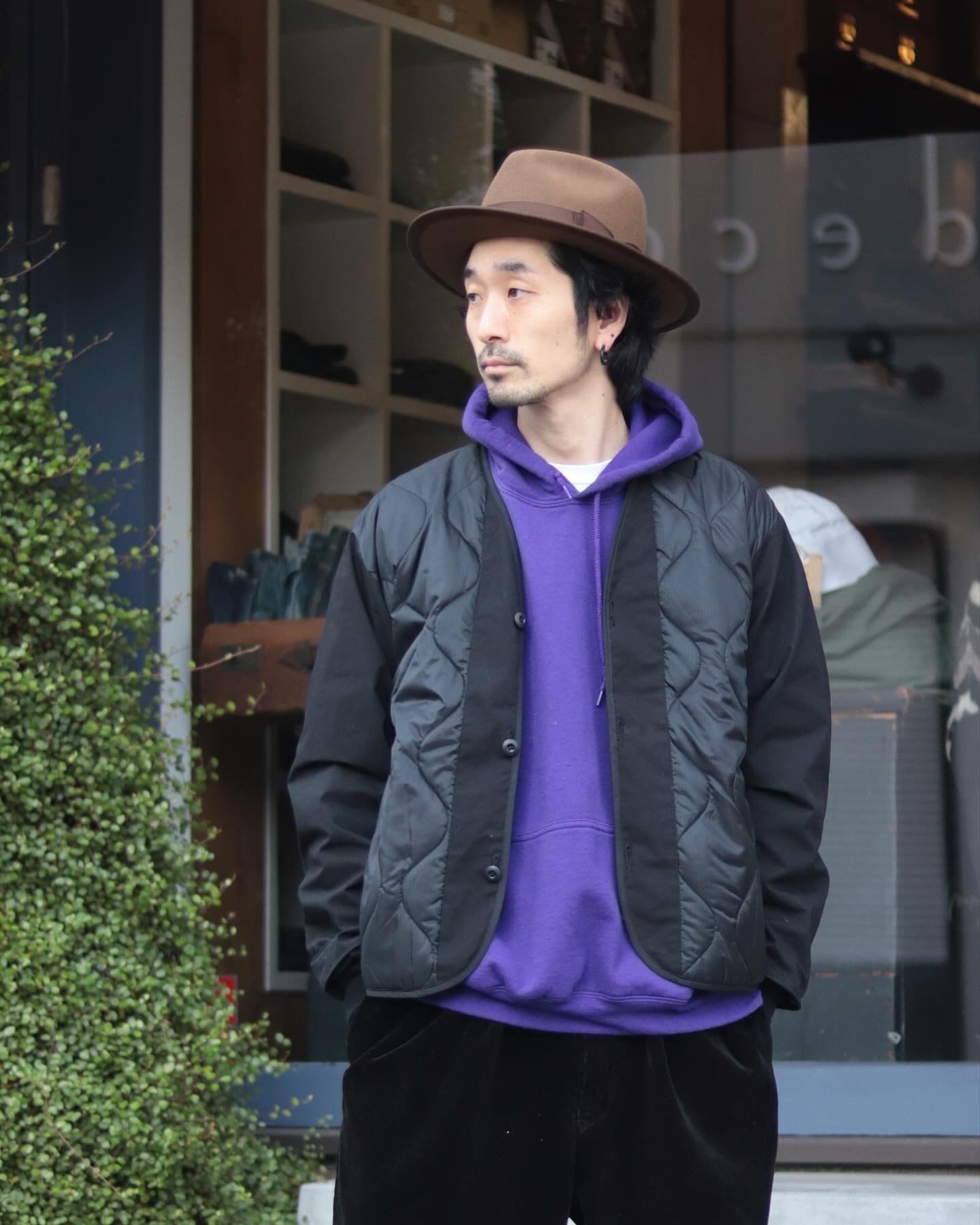 高密度ナイロンリップストップのオリジナルキルティング生地と、ハリのある高密度コットン生地との切り替えが特徴のM-51ライナータイプジャケットとなっています。