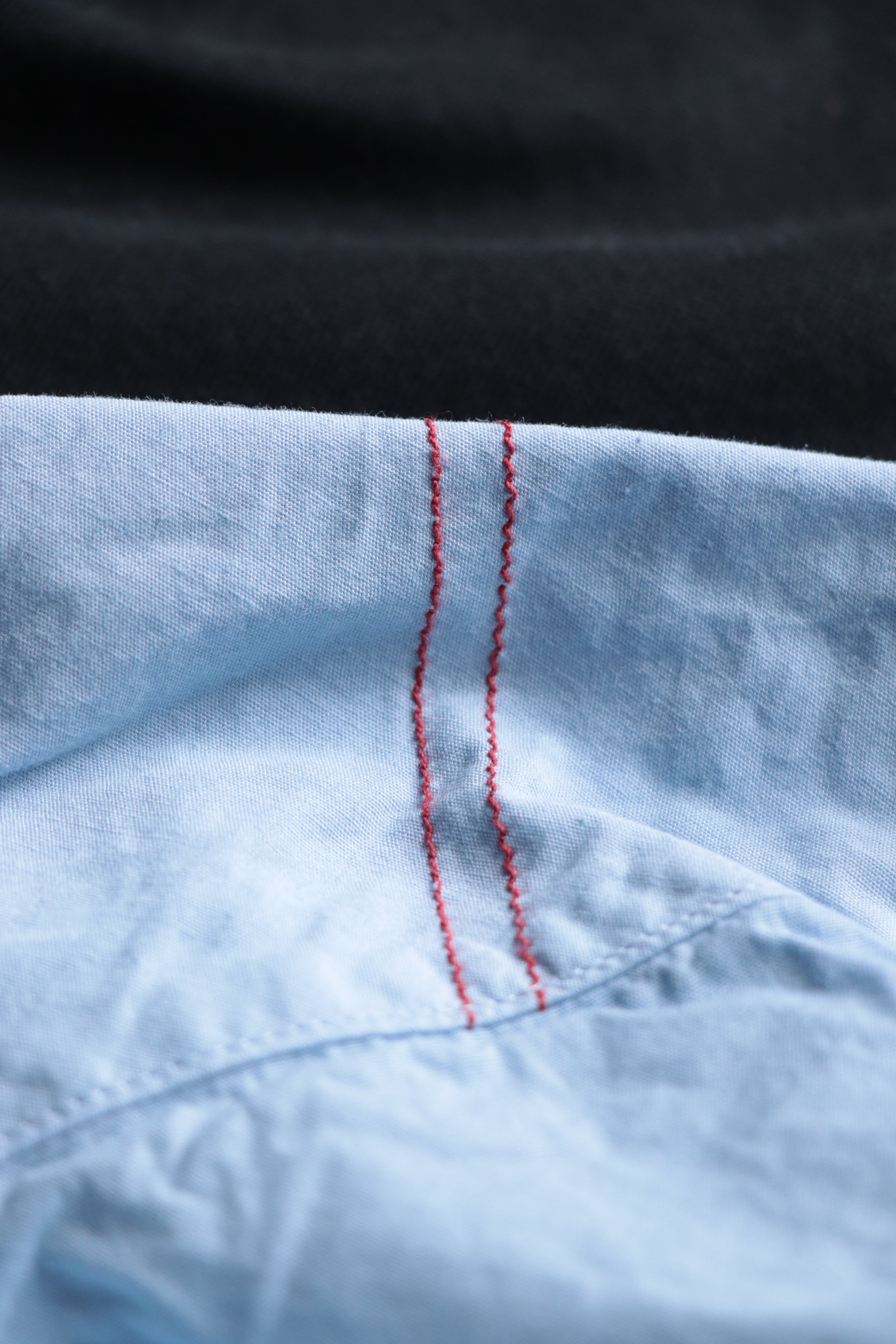 ボタンダウンには珍しく、スクエアカットされた裾のラインが特徴です。