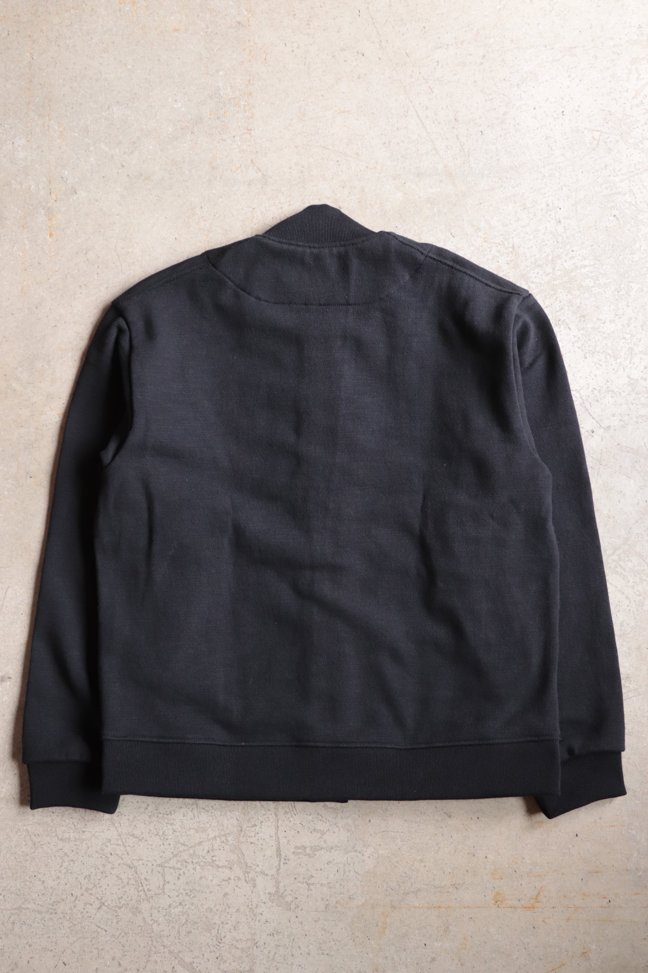 太番手の国産糸を使用し日本国内で編み立てたGG(ガラガラ)裏毛素材のスウエットグラウンドジャンパーです。