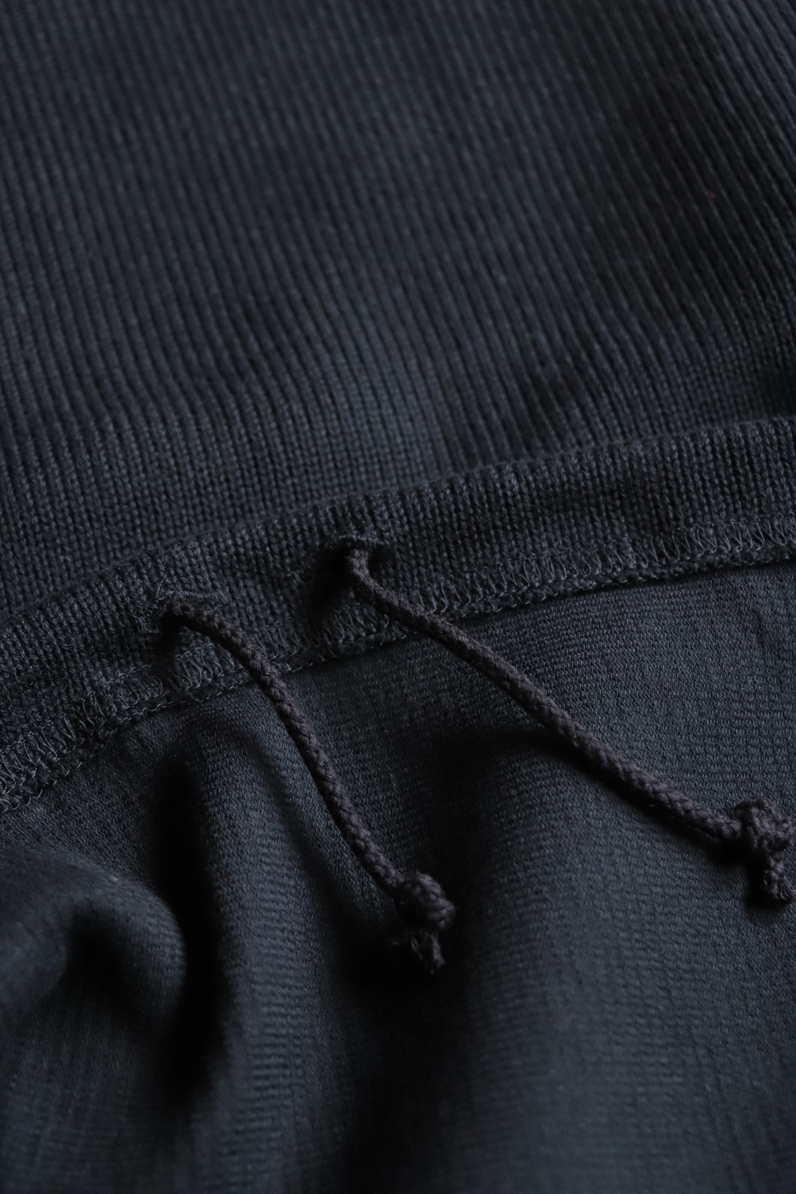 デザインはBaseball選手がバッティング練習時に着用する裾に調節コードが付いたウエアをモチーフに、裾ひもを絞ることによって素材と肌の間に隙間を作り初秋から快適に着用できる工夫をして制作されています。