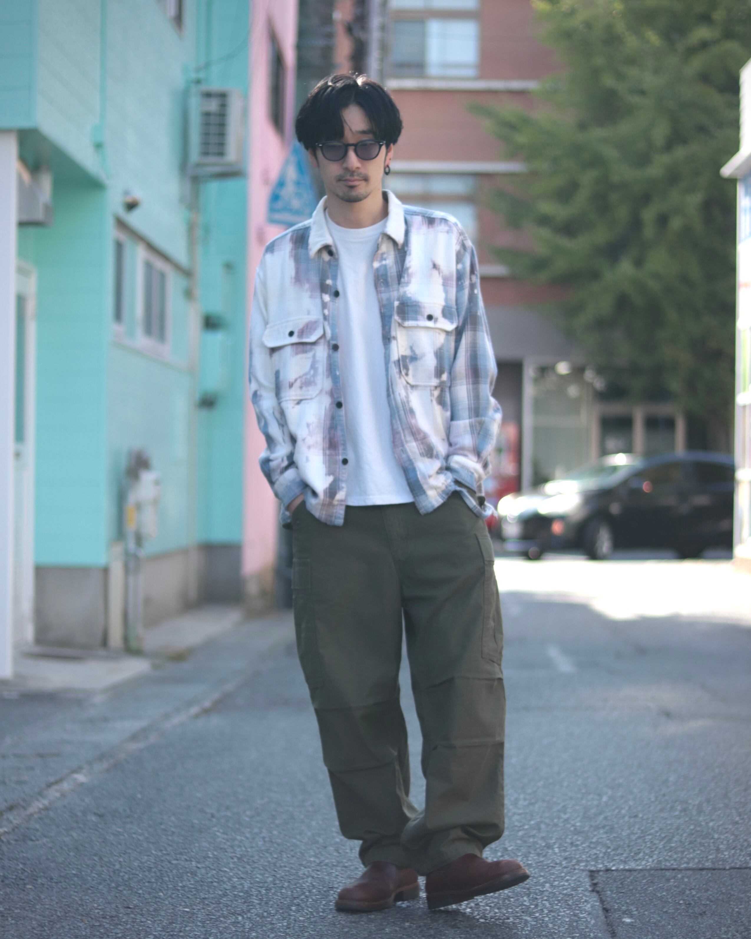 ブリーチとダメージ加工が印象的なCPOシャツです。