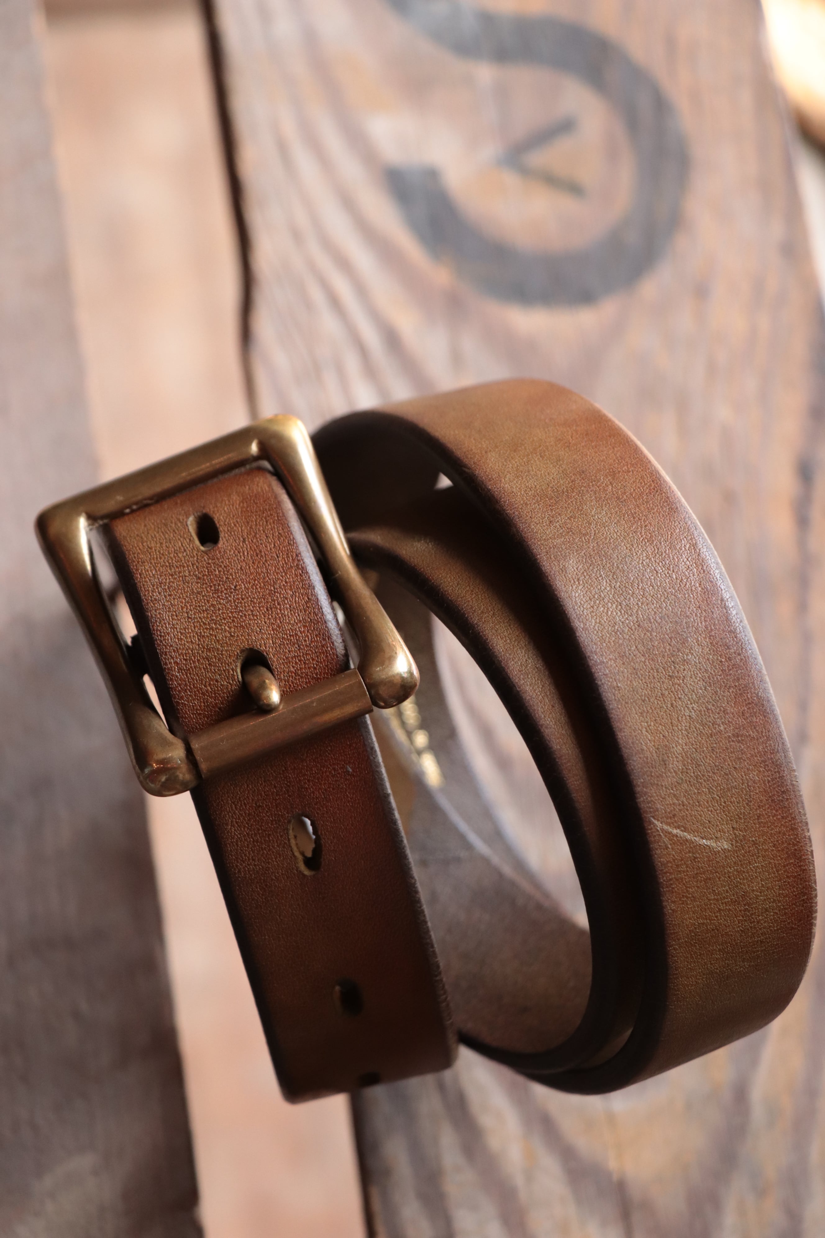 ジーンズにはもちろん、やや細身という事で、パンツを問わずに使って頂きやすいベルトです。